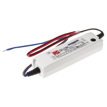 TUV EN 61347-1, EN 61347-2-13, UL8750. TUV, UL recognised for Canada ; US. For Industrial Use Only, not in scope of Regulation (EC) No 125/2009. Power derates above 50°C. MTBF to MIL-HDBK-217F. 2. RS - 20W Waterproof (IP64) SMPSU with PFC. External switch mode IP64 rated constant current and constant voltage mode power supplies High efficiency, long life and high reliability Designed for indoor or outdoor installations Suitable for LED lighting and moving sign applications Built-in constant current limiting circuit with adjustable over current protection 100% full load burn-in test Short circuit, over-load, over-voltage, over-temperature protection 320mm un-terminated, 2-core 18AWG input lead 320mm un-terminated, 2-core 18AWG output lead EMC compliance to EN 55015 Power factor correction to EN 61000-3-2