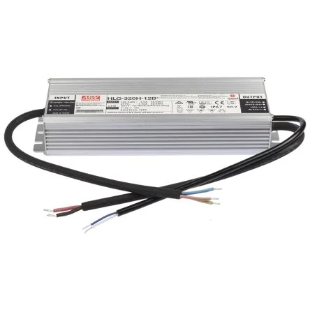 UL8750, EN61347-1, EN61347-2-13 independent approved. Design refer to UL60950-1, TUV EN60950-1. cULus, TUV. For Industrial Use Only, not in scope of Regulation (EC) No 125/2009.MTBF to MIL-HDBK-217FDerate output above 50°C operating temperature (100 Vac)Derate output above 60°C operating temperature (230 Vac). 5. Mean Well 320W IP67 Dimmable Constant Current/Voltage LED Driver/Power Supply - HLG-320H. HLN-320H series 320W dimmable constant current, constant voltage, LED driver / power supply with universal AC input. These IP67 dimmable LED drivers / power supplies have a built in 3 in 1 dimming function and built in active PFC function. Suitable applications for these dimmable IP67 LED drivers / power supplies include LED lighting and street lighting and can be used in dry, damp or wet locations. Full range universal AC inputIP67 design for indoor and outdoor installationFree air convection coolingBuilt in active PFC functionConstant current level adjustable via output cable with 1 to 10 Vdc or 10V PWM signal or resistor3 in 1 dimming function (1 to 10 Vdc or PMW signal or resistance)Short circuit, overload, over voltage and over temperature protectionCompliance to worldwide safety regulations for lightingEMC compliance to EN55015, EN55022 (CISPR22) Class BHarmonic current compliance to EN61000-3-2 Class C (=50% load); EN61000-3-3