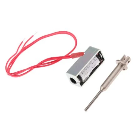 Compact 12V linear solenoid with 0.4N force, ideal for automation and small mechanisms.