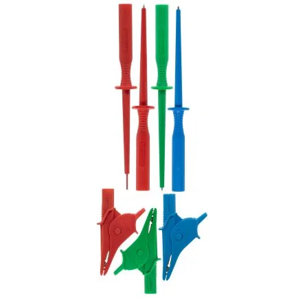Efficiently test electrical connections with the Megger Connector Kit featuring a 7 piece probe and clip set.