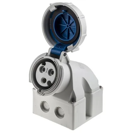 Mennekes IP67 16 Amp and 32 Amp Wall Mounted Receptacles. From Mennekes, a series of wall mounting IP67 watertight CEE receptacles which are robust, reliable and easy to connect via simple screw terminals. Constructed from a toughened Amaplast housing these water tight industrial connectors include a cable entry at the top and a further two blind cable entry knock outs at the bottom supporting simple installation. An easy opening and closing spring loaded lid provides protection against the ingress of foreign matter and water when the power connector is not in use. A rubber seal on the inner lid and secure bayonet locking ring system ensures a waterproof seal. Expertly designed, the Mennekes IP67 BS4343 wall mounting receptacles perform exceptionally well in the most demanding environments.. What is Amaplast ?. Amaplast is a superior quality, industrial, toughened thermoplastic material with excellent characteristics. Making them virtually unbreakable. The key points are;. • Abrasion resistant • Self-extinguishing • Heat resistant • Resistant to cold temperatures • Wear resistant • Good electrical insulation. Environmental Protection – IP Rating. Mennekes CEE industrial IP67 connectors are designed in accordance with BS EN 60529. The IP rating is composed of two numbers. The first number refers to protection from solid matter, the second number for protection against liquids. The higher the number the better the protection. See technical datasheets for full definitions. Colour Coding. CEE connectors have an industry standard colour coding in compliance with BS EN 60309-2 / BS4343 and IEC 309 Colour coding refers to a connectors rated voltage. • Violet, 20 V to 25 V • White, 40 V to 50 V • Yellow, 100 V to 130 V • Blue, 200 V to 250 V • Red. 380 V to 480 V • Black, 500 V to 1000 V. Features and Benefits. • Simple screw connection terminals • Two external wall fixing points • Enclosure base can be rotated through 180° for easy installation • Three cable entries. One at the top of the enclosure, an additional two blind entries at the bottom that can be punched out if required. • Resistant to chemicals and vapours. • Good resistance to mechanical and thermal stresses. • Option to fit an auxiliary switch supporting control monitoring, signalling and electrical interlocking. • Exceptional performance in environments with high humidity, salt or acidic air. Applications. • Food processing plants and factories where connections must be protected when the washing down of equipment is imperative. • Breweries, Connections exposed to high temperatures and humidity. • Dairies, exposure to large volumes of liquid. • Farms, receptacles come into contact with mud, liquids and grime • Garden centres, connections exposed to outdoor weather and damp conditions. • Power points on campsites. • Heavy industrial Power plants, in mills foundries where connections are exposed to dust and metallic particles in the air. Q ;A. Q: Are the Mennekes IP67 wall mount receptacles easy to connect ? A : Yes, the toughened enclosure has two external fixing 5.3 mm slots at each side of the base. Q Are there any accessories or mating plugs ? Connector ; 111-5534 111-5534 mates with plugs ; 492-5824 492-5824 and ; 235-9966 235-9966 Connector ; 111-5535 111-5535 mates with plugs ; 492-5846 492-5846 and ; 236-0180 236-0180 Connector ; 111-5536 111-5536 mates with plugs ; 492-5852 492-5852 and ; 236-0118 236-0118 Connector ; 111-5537 111-5537 mates with plugs ; 492-5969 492-5969 and ; 236-0045 236-0045 Connector ; 111-5539 111-5539 mates with plugs ; 492-5953 492-5953 and ; 236-0168 236-0168 Connector ; 111-5540 111-5540 mates with plugs ; 492-5975 492-5975 and ; 236-0095 236-0095 Connector ; 111-5541 111-5541 mates with plugs ; 492-5981 492-5981 and ; 236-0023 236-0023