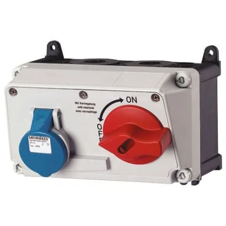 Durable Mennekes IP44 interlock socket with 16A capacity for reliable industrial use.