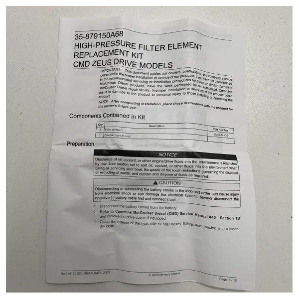 Ensure your engine runs smoothly with this high-quality Mercury filter element.