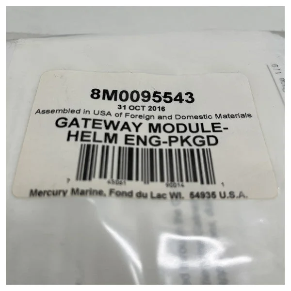 Mercury Mercruiser CAN H Gateway | Helm module - 8M0095543 Product description: The Mercury Mercruiser CAN H Gateway | Helm module - 8M0095543 is an essential component for integrating advanced navigation features on your boat. This module acts as an interface between your CAN H GPS & IMU (Inertial Measurement Unit) and NMEA2000 devices, such as an approved chart plotter. Features: Compatibility: Works with Mercury Mercruiser joystick systems (usually included in the complete rigging kit). Interface: Provides a seamless connection between CAN H-based navigation equipment and NMEA2000 networks. Advanced features: Unlocks functions such as waypoint sequencing, automatic course determination, and SkyHook positioning. Easy installation: Plug-and-play design for simple integration with existing systems. Specifications: Part number: 8M0095543 Type: CAN H Gateway Module Compatibility: Mercury Mercruiser joystick systems Connectivity: CAN H, NMEA2000 Functions: Waypoint sequencing, automatic course determination, SkyHook Installation: Plug-and-play Benefits: Increases the functionality of your navigation system. Unlock advanced features for more accurate navigation. Simple installation and integration. Reliable Mercury Mercruiser quality. Applications: Boat owners with Mercury Mercruiser joystick systems. Users looking to add advanced navigation features. Boaters seeking a reliable and user-friendly gateway module.