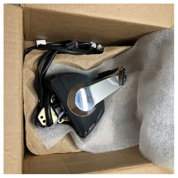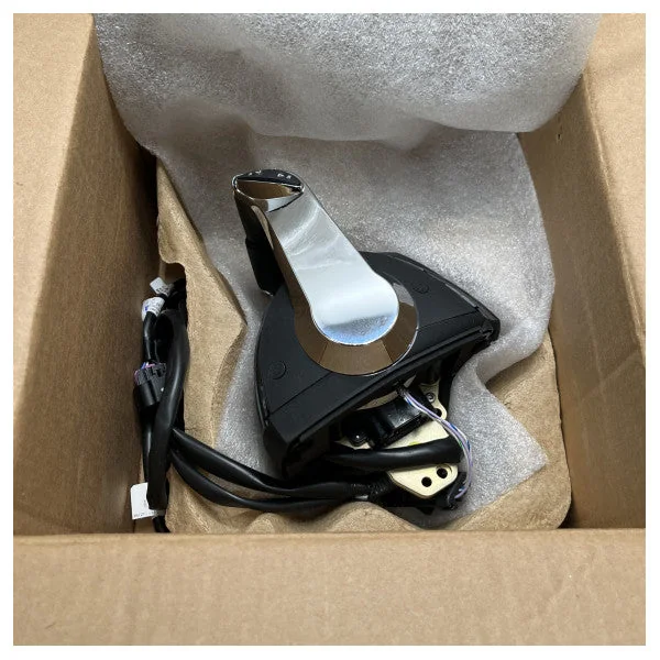 Mercury Mercruiser DTC dual engine control handle with trim function - 8M0096751 Features: Electronic remote control for two outboard motors with DTS control Suitable for engines from 2007 onwards With trim function Includes control buttons for throttle, trim, and reverse Easy to install and use Specifications: Part number: 8M0096751 Weight: 1.2 kg Dimensions: 40 x 18 x 12 cm Operating voltage: 12 V Description: The Mercury Mercruiser DTC dual engine control handle with trim function is an electronic remote control for two outboard motors with DTS control. The remote control is suitable for engines from 2007 onwards and has a trim function. This allows the motors to be trimmed, improving the stability and performance of the vessel. The remote control is equipped with control buttons for throttle, trim, and reverse. The buttons are ergonomically designed and feel comfortable in the hand. The remote control is easy to install and use. The Mercury Mercruiser DTC dual engine control handle with trim function is an ideal solution for those who want to control their outboard motors remotely. The remote control is reliable, user-friendly, and offers a wide range of features. Advantages: Electronic control Suitable for DTS engines With trim function Easy to install and use