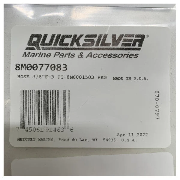 Mercury Mercruiser hydraulic bulkhead pass-through steering assistance hose kit - 8M0077083