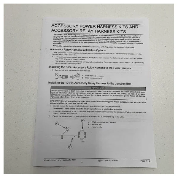 Enhance your boat's electrical system with the Mercury power harness relay kit.
