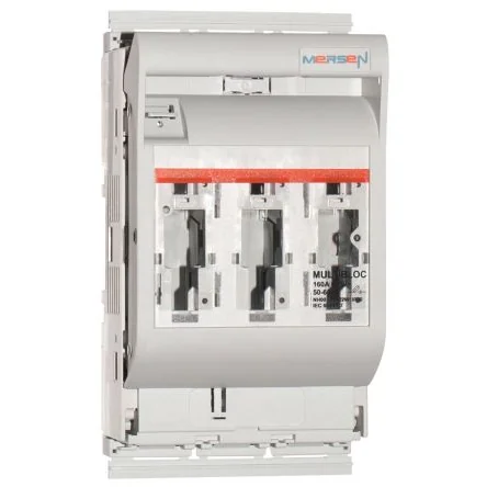 • IEC/EN 60 947-3 • For NH-fuse links size 000/00 in accordance with IEC/EN60 269-2 • VDE 0636-2. Mersen MULTIBLOC® NH Fuse Switch Disconnectors Size 00.ST9 Series. From Mersen, a range of IEC fuse switch disconnectors to accommodate NH fuse links in accordance with IEC/EN 60269-2, VDE 0636-2 SIZE 00. The MULTIBLOC® 00.ST9 series are designed for bottom fitting and panel installation up to 160A. Suitable for mounting on TS35/15 DIN Rail EN60715. Features and Benefits. • DIN Rail mounting to EN60 715 – optional • IP30 rated • Sealing and padlocking device integrated in switch door cover • 81 mm Installation depth • Modular system cover for cable termination area can be extended. Applications. • Transmitting stations • Meter distribution units • House incoming units