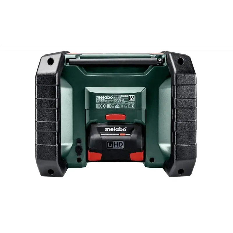 Compatibility Information: The R 12-18 DAB+ BT is compatible with all Metabo slide-on battery packs from 12 to 18 volts and can also be powered via mains electricity.