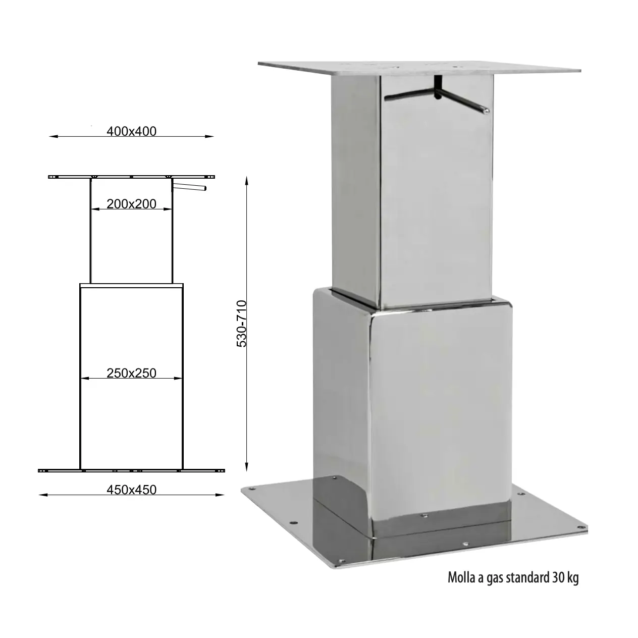 Metalstyle BTGQ II double stainless steel adjustable table base. Manually adjustable stainless steel table leg square.