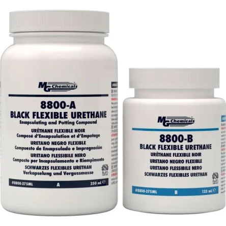 8800 is a black, flexible, two-part polyurethane potting compound. It has a low mixed viscosity and maintains excellent flexibility at low temperatures. In addition, it adheres strongly to a wide variety of substrates, including metals, composites, glass, ceramics, and many plastics. 8800 is a cost-effective flexible potting option that provides exceptional physical protection and creates minimum stress on circuit boards and surface-mounted devices. It offers superior moisture resistance and is an ideal choice for harsh environment applications, especially salt water exposure and marine applications.2:1 mix ratio 5-7 minute working time 24 hour cure at room temperature Constant service temperature of -50 to 120 °C (-58 to 248 °F) Excellent dielectric properties