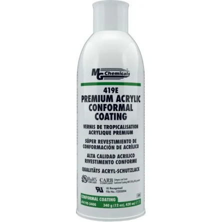 - MG Chemical Clear Acrylic Conformal Coating, 420 ml Aerosol, -65°C min, +130°C max - 419E-340G