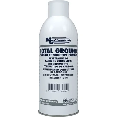 Refer to the technical datasheet for more technical information and typical applications. MG Chemicals 838AR Total Ground Conductive Coatings. The black 838AR total ground lacquer from MG Chemicals is a carbon conductive coating that has been designed to give you strong adhesion to many materials. The one part acrylic lacquer has been pigmented with a highly conductive carbon powder. Feature and Benefits. Quick drying time Apply using a brush or spray No heat curing is required Strong corrosion resistant HAP free Cost effective Adheres to ABS, polycarbonate and other injection moulded plastics Available in different sizes as an aerosol or can. Typical Applications. Suitable for marine environments Use for grounding or RFI shielding applications