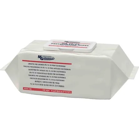 The MG chemical alcohol presaturated wipes comes in a resalable soft package which is mainly used as an electronics cleaner. The liquid Isopropyl Alcohol is perfectly mixable with water and also with large variety of organic solvents. It is good in dissolving dirt, dust, greases, and light organic contaminants on the equipments.It removes dust, dirt, and greases from electronics and peripherals It is RoHS compliant It is good for cleaning SMT stencils