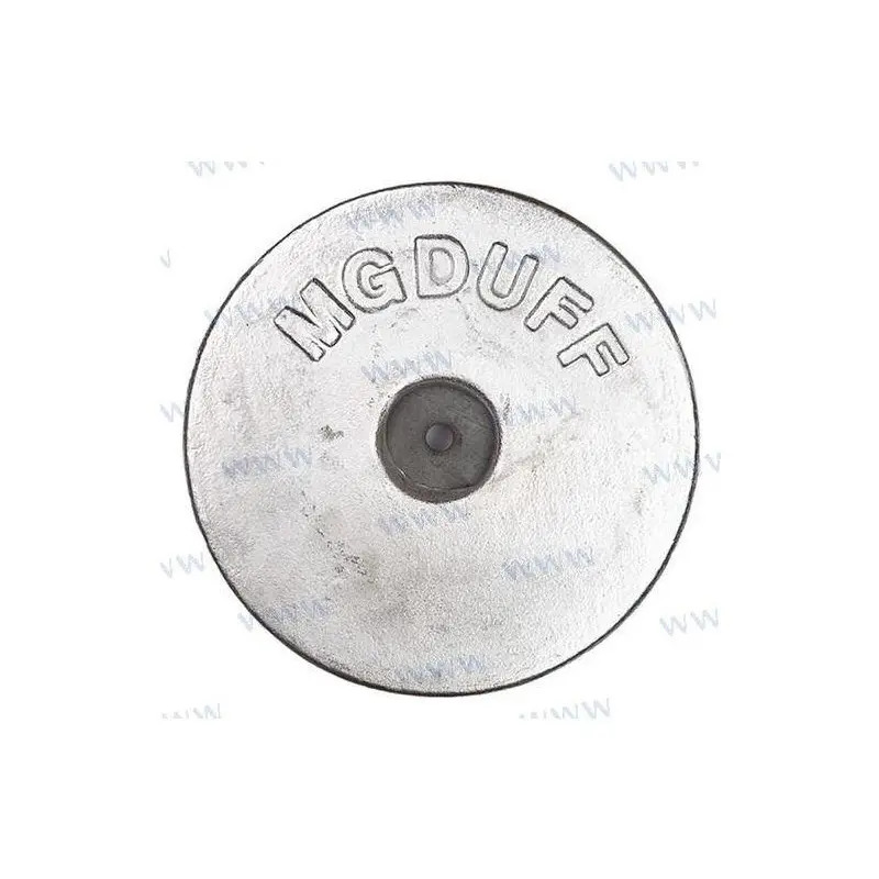 The 7 kg zinc disc anode manufactured by Mgduff is the ideal replacement for cathodic protection of hulls, propellers, or other metal parts exposed to corrosion in marine environments.