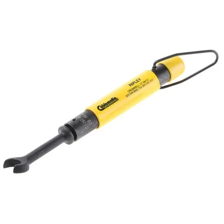 Torque Wrench TW-AH. Angled head F connector interface with factory preset torque setting Audible clicking sound to indicate proper calibrated torque High visibility yellow cushion grip body Model number, torque inch-pounds and wrench size stamped on tool for easy identification Wrenches work in tightening mode only Tap port re-threader on end of tool body Length: 165 mm Weight: 182 g