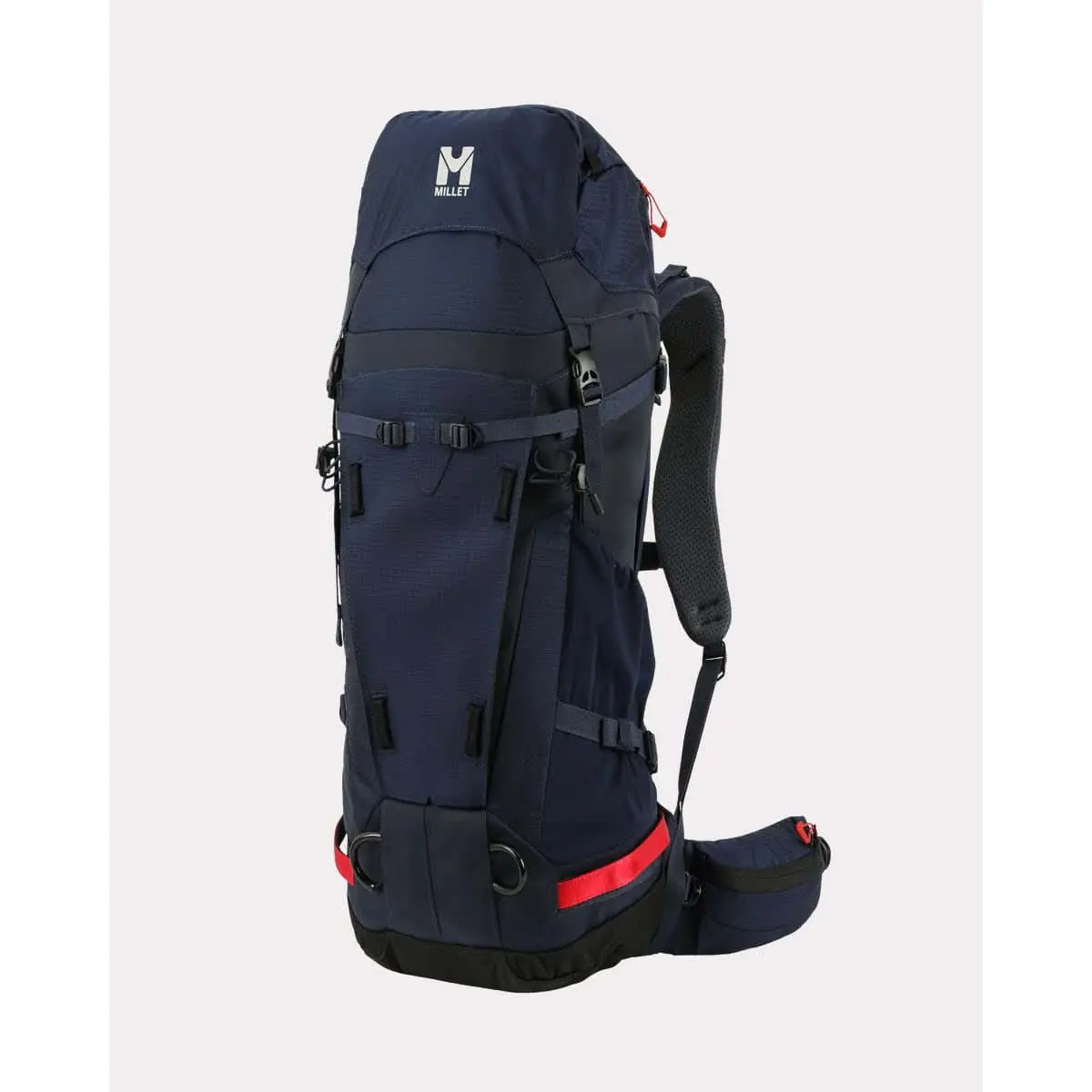 The PEUTEREY 35+10 DARK DENIM backpack from Millet is designed for hiking and ski touring. Made from recycled polyamide, this backpack is durable and environmentally friendly. It features a large main compartment of 35 litres, perfect for carrying all the necessary gear for a day outdoors. The backpack is equipped with the Variloop™ carrying system, allowing you to transport equipment such as skis, snowshoes, or poles. It also includes a zipped compartment at the back for valuables and a mesh pocket on the front for quick access to frequently used items. In case of rain, the integrated rain cover protects your belongings. Compact and lightweight, this backpack is perfect for outdoor adventures, allowing you to keep everything you need within reach.
