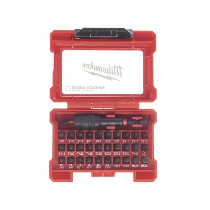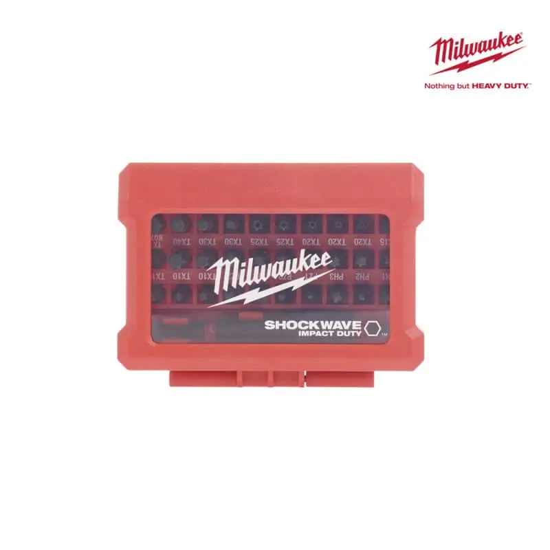 32-piece MILWAUKEE shockwave set - bit holder 4932464240, a range specially designed for impact tools and screwdrivers, it is perfect for intensive and difficult fastening and drilling applications.