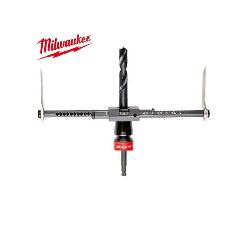 The Milwaukee adjustable hole saw is capable of drilling large diameter holes (from 51 mm to 178 mm) in plaster to install recessed spotlights or speakers, for example. The diameter adjustment is made in increments of 6.4 mm. Its large diameter transparent bell allows you to monitor the work in progress while protecting you from debris caused by drilling. Milwaukee's QuikLok system enables it to be mounted on any tool.