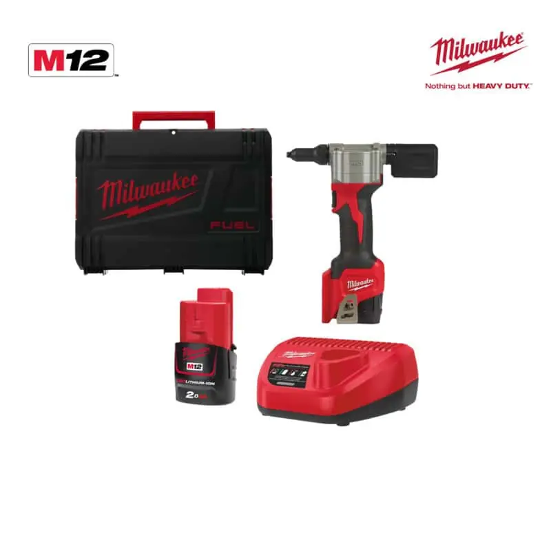 MILWAUKEE M12 BPRT-201X Rivet Gun - 1 x 12V 2.0 Ah Battery - 1 Charger 4933464405