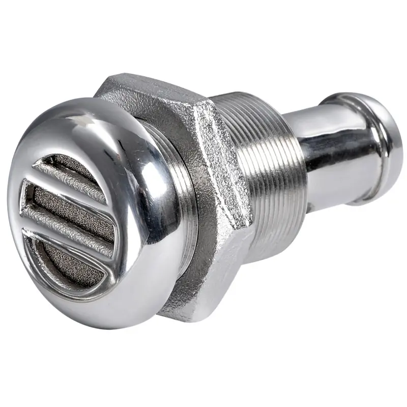 Mirror polished AISI 316 stainless steel fuel vent, fitted with anti-flood system