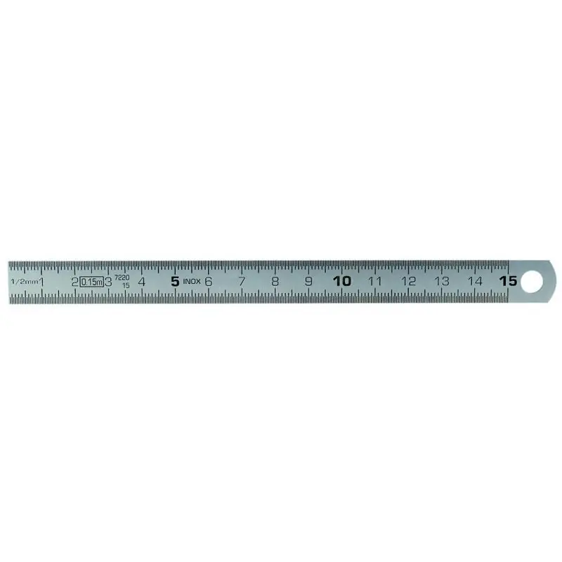 This high-quality stainless steel ruler features a matte chrome finish, providing a non-glare surface for precise measurements. Graduated in millimeters (mm) and half millimeters (0.5 mm) on one side, it offers clear and accurate readings. The ruler is made from tempered stainless steel, ensuring durability and resistance to corrosion.