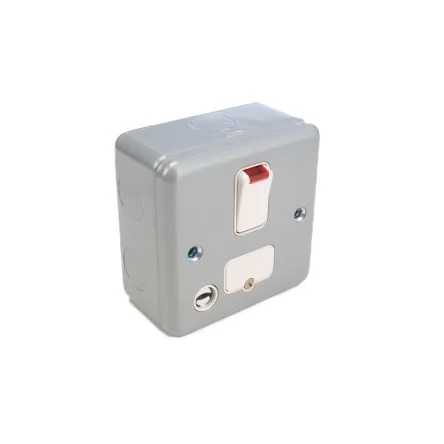 MK Electric Switched Fused SpurThe MK Electric 1-gang switched fused spur with a neon indicator has a current rating of 13A. This 2-pole switch has an outer casing manufactured from tough mild steel with a scratch-resistant paint finish. There is a 3-pin operated safety shutter on the socket. This durable wiring accessory designed for use in rough environments. It has a length of 86mm, a width of 86mm and depth of 47mm.Features and BenefitsEasy to install Surface mount Neutral contact makes first and breaks last for added safety Minimum 3mm contact gap for safety switch isolation Fuse carrier can be padlocked in an open position for safe maintenance Earth terminal fitted in base of box Epoxy/ polyester and metallic powder paint coatingApplicationsFactories Garages Tool sheds Warehouses WorkshopsCertificationsANSI/ESD S20.20:2014 BS EN 61340-5-1:2007