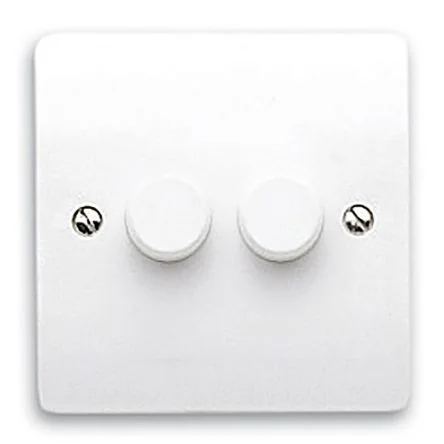 Twin LED Dimmer Switch. The Logic Plus™ LED twin dimmer switch from MK is designed to control across different types of loads from standard LED to low voltage. The dimmer offers a reliable dimming solution and allowing you to create a comfortable ambience. Features and Benefits. LED twin dimmer (4-70 W). Slim profile with curved edges. Overload protection. Maximum of 10 lamps per circuit