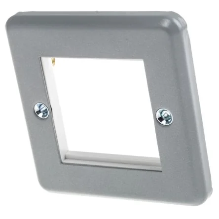 Module Front Plates. Module faceplates match Logic Plus with their radiused corners and chamfered top edge giving an unobtrusive, slimline appearance whilst preventing dust collection Metalclad faceplates match Metalclad Plus with outer casing manufactured from tough mild steel and scratch resistant paint finish Matt chrome faceplates match Matt Chrome Plus accessories