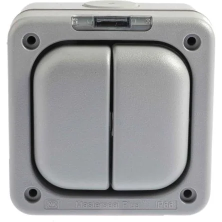 MK Electric Grey Outdoor Light Switch, 1 Way, 2 Gang, Masterseal - K56402GRY