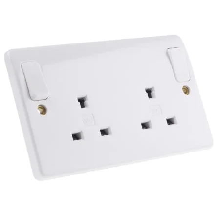 MK Electric Socket OutletThe MK Electric 2 gang white socket-outlet is designed for ease of installation. It has a voltage rating of 230VAC and a current rating of 13A. The plug contains antimicrobial properties that inhibit the growth of infectious diseases. The twin terminals provide high integrity earthing. Note: This product is provided with facilities for ’clean earth’ connection and is suitable for non-standard plugs with ’T’ shaped earth pin. Supplied with: 8888 MK Logic Plus Flush Mounting Stylish, quality, reliable and safe products that incorporate a host of design features which make the installers job easier and quicker. Logic Plus products are made from a high-grade thermoset material which has an inherent antimicrobial property. In recent independent tests, the Logic Plus products were equal to or exceeded, competitor ’Anti-Bac’ products when tested for resistance to MRSA, E-Coli, Salmonella and Klebsiella Pneumoniae.Features and BenefitsSwitched button Flush mount Type G - British Urea Formaldehyde material Captive screw terminal Earth terminal The number of poles are 2CertificationsIP2XD rated BS1363 (Pt2: 1995) ANSI/ESD S20.20:2014 BS EN 61340-5-1:2007
