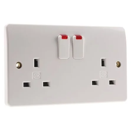 MK Electric Logic Plus White 2 Gang Plug Socket, 2 Poles, 13A, Type G - British, Indoor Use - K2647 WHI