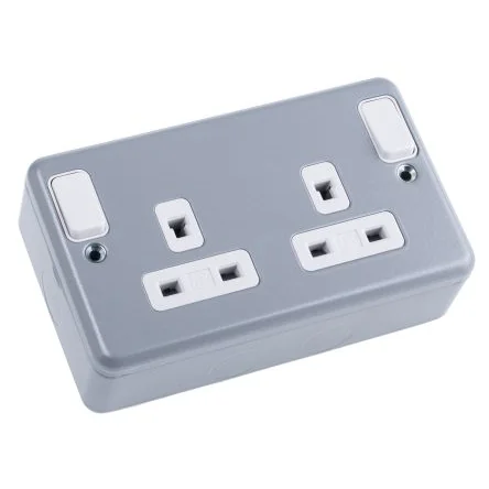 MK Electric Metalclad Plus Grey 2 Gang Plug Socket, 2 Poles, 13A, Indoor Use - K1248-ALM