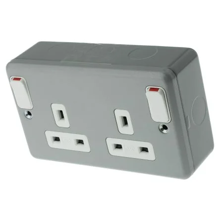 MK Electric Metalclad Plus Grey 2 Gang Plug Socket, 2 Poles, 13A, Type G - British, Indoor Use - K2945 ALM