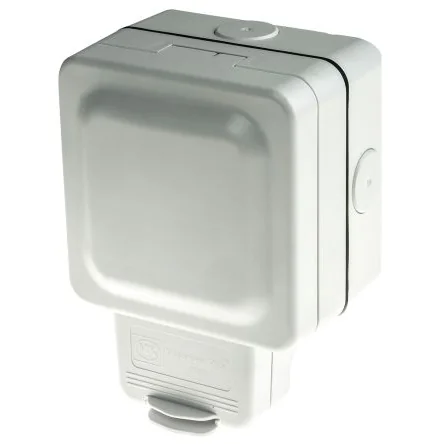 BS 1363 Pt.2:1995 IP56 BS EN 60529 : 1992. 13 Amp Masterseal Plus Double Pole Single Gang Switched Socket Outlet. 13 Amp double pole single gang switched ingress protected socket Fixing holes are for No.8 woodscrews (not supplied) Backbox has 5 cable entries, 2 on top and 1 centrally on the other 3 sides Supplied with earth terminals in the backbox Dimensions: 175 x 115 x 80 mm Available in Grey ( ; 787-1219 787-1219 ) or white ( ; 787-1212 787-1212 )