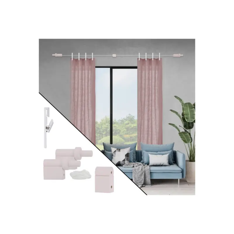 The Boreal MOBOIS- pink set allows you to hang your curtains with elegance and create a warm and soothing atmosphere. The powder pink tone is not just reserved for little girls' rooms; it finds its place in all rooms. By playing with materials and colours, you achieve a modern and harmonious decoration that reflects your style.