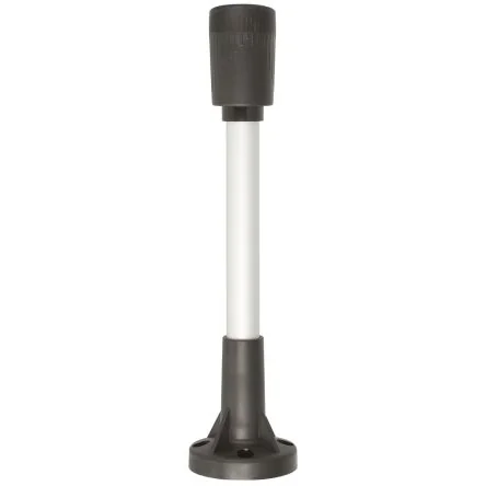 There are three base mounting options available: a mounting foot ; 100mm pole (stock no. ; 901-0738 901-0738 ); a mounting bracket ; 100mm pole (stock no. ; 901-0747 901-0747 ); or mounting foot, top cap ; 100mm pole (stock no. ; 901-0740 901-0740 ). Each base is supplied with a 1 metre flying lead. Moflash LED-MINI Modular Signal Tower. The LED-MINI modular signal towers are ideally suited for status indication in light commercial signalling applications where a low cost, compact and local signal is required. The beacons have a continuous/static light (single stage alarm), so once the beacon is energised the LED ‘s will stay permanently on. An advantage of this type of operation is that it can be controlled via a remote source such as a control panel or plc, giving the beacon greater flexibility by offering a flashing second stage alarm. The LED-MINI is a modular system that is easily assembled. The colour beacons have quick fix terminations that simply push into the male terminals in the module below to make the connection. Features and Benefits. Continuously rated LED long life Low current consumption Economical 360° light output around the vertical axis UV stable polycarbonate lens and base IP54 protection RoHS compliant