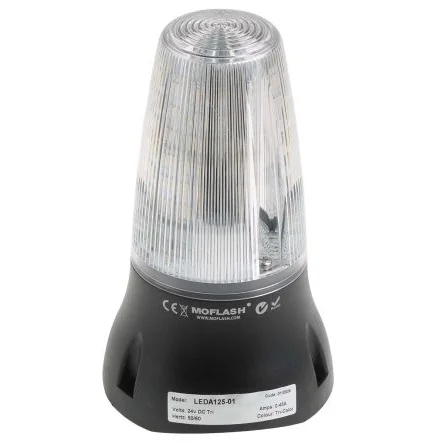 Moflash LEDA125 Series Clear Sounder Beacon, 24 V, IP65, Wall Mount, 90dB at 1 Metre - LEDA125-01