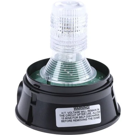 Moflash BeaconThe Moflash xenon beacon is suitable for security and general industrial signalling applications where a more robust and powerful signal is required. This is flashing mode range of beacon incorporates an internal Fresnel lens designed to maximise the light intensity and has a double flash option (activated by a slide switch on the PCB) that extends the signal duration making it more noticeable to the human eye. It is controlled via a PCB and puts out a very brief but very bright flash of white light by ionizing and then discharging a large current through the xenon gas. Note Lens must be ordered separately (typical stock no. 286-9031)Features and BenefitsThe supply voltage is 230VAC Internal dioptric lens to enhance visual light output by 20% Single or double flash in one unit Continuously rated High light output Flashy bright 10.0J/7.5J xenon signal Suitable for surface or wall mounting Optional wall bracket and guard available 3-point fix M20 side-entry or bottom cable entry 360° light output around the vertical axis 180° light output above the horizontal axis Dustproof and weatherproof UV stable polycarbonate lens and ABS plastic base Height is 205mm and base diameter is 150mm Operating voltage ranging between -25°C and 55°CApplicationsRefuge trucks Utility vehicles Agriculture Plant and contracting, Fleet vehicles Industrial Commercial buildingsCertificationsIP65 rated CE certified