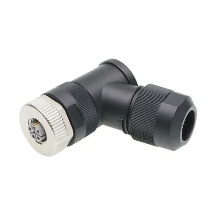 Reliable M12 female connector with 5 contacts, designed for durable cable mounting and IP67 protection.