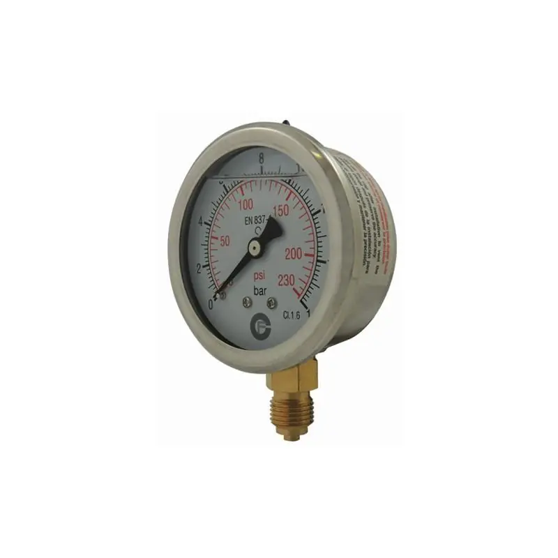 The Manomètre inox à bain glycérine Radial 0 à 25 bars Ø63 1/4" is a high-performance pressure gauge designed for precise pressure measurement in industrial applications. Its glycerin-filled mechanism ensures stable readings by dampening vibrations and temperature fluctuations.