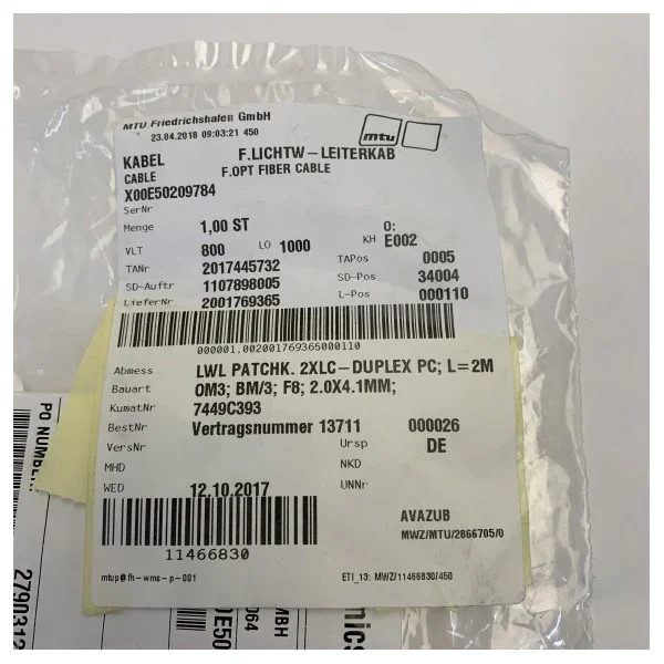 MTU X00E50209784 Fiber Optic Connection Cable for reliable connectivity.