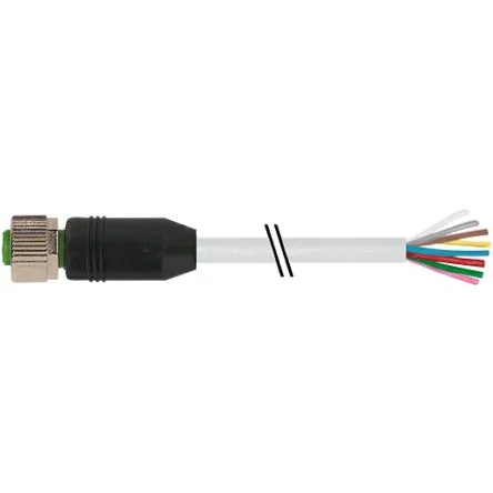 The Murrelektronik black M12 female straight 10M PUR cable has 8-pole with cable sleeves. It has plastic housings with good resistance against chemicals and oils. The resistance to aggressive media should be individually tested for your application.Operating voltage max. 30 V AC/DC Operating voltage (only UL listed) max. 30 V AC/DC Rated surge voltage 0.8 kV Operating current per contact max. 2 A Material group IEC 60664-1, category I Coding A-coded Locking of ports Screw thread (M12x1 mm) recommended torque 0.6 Nm, self-securing Compression gland M12 (SW13) Protection IP65, IP66K, IP67 inserted and tightened (EN 60529) Locking material Zinc die casting, matte nickel plated Material PUR