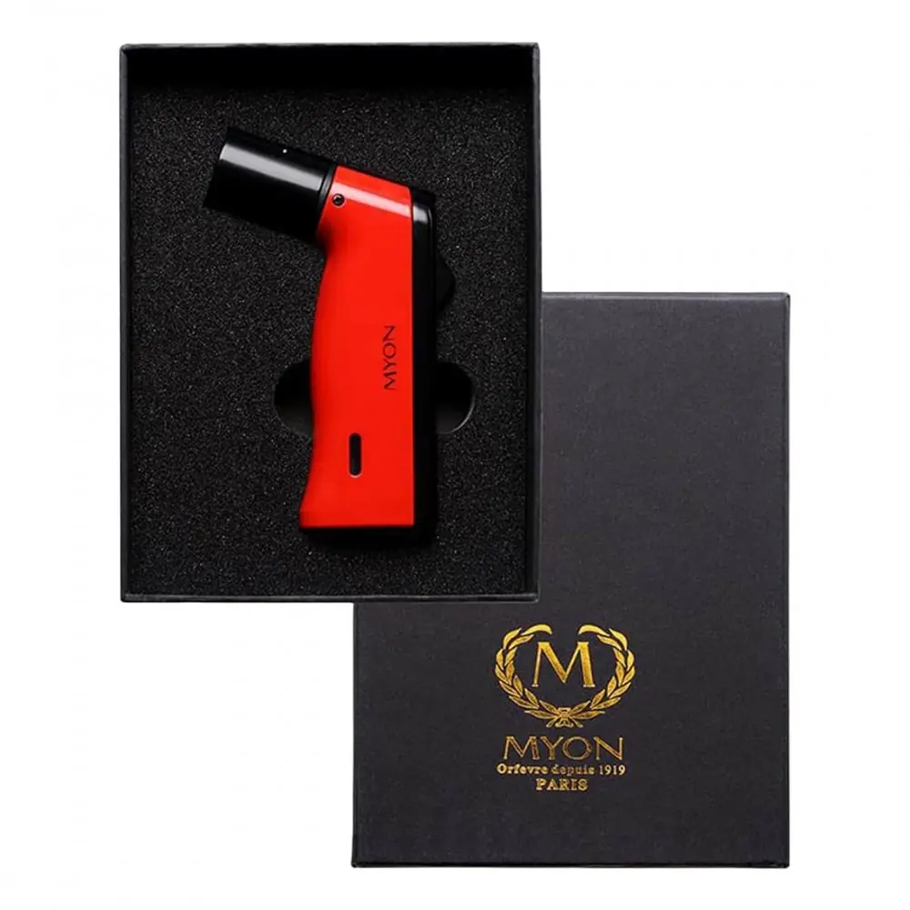 the myon 4 flames red storm lighter is the ideal tool for lighting your cigarettes and cigars easily and quickly. featuring four powerful torch flames it provides an exceptional lighting experience. refillable with gas it is also equipped with a puncher to punch the end of your cigars. its red and black design gives it an elegant and modern look.