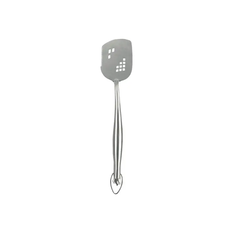 The Pro NAPOLEON spatula is ideal for barbecues. With its large head, it provides a good grip, and the serrated edge allows you to cut food directly on the grill. Guaranteed against rust, you can use it frequently without risking damage.