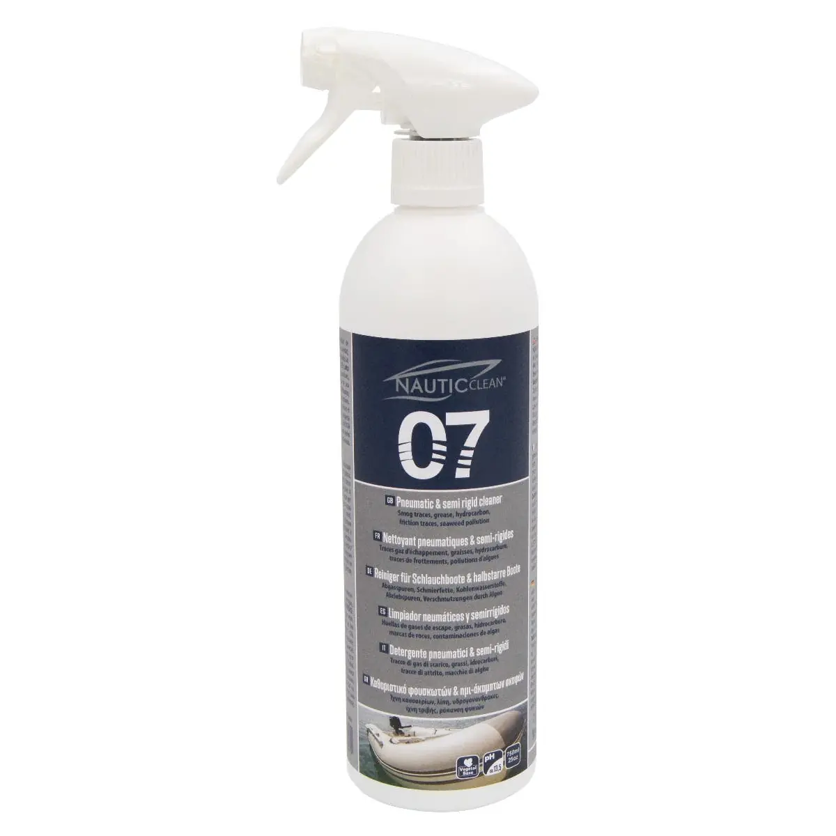 Nautic Clean 07 Pneumatic & Semi-Rigid Cleaner is a specialized cleaning solution designed for the thorough maintenance of inflatable and semi-rigid boats. It effectively emulsifies and removes various contaminants, including dull films, grease, engine soot, oxide deposits, marine pollution, and friction marks. Notably, the product does not contain petroleum solvents, preventing surfaces from becoming sticky.