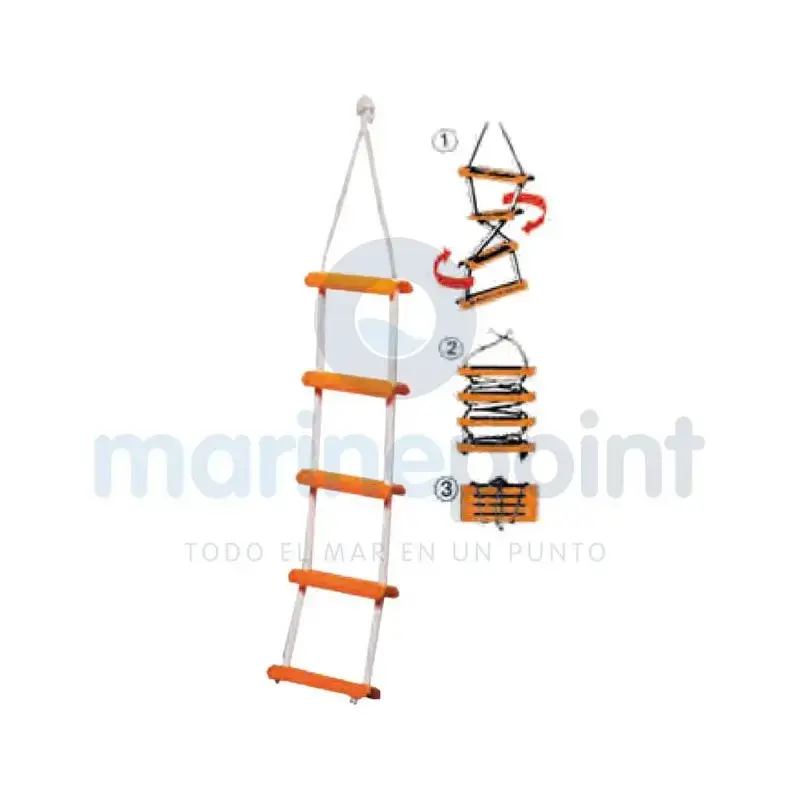 Make access to your boat easier and safer with this five-step boarding ladder. Its robust and lightweight design, made with white nylon rope and polycarbonate steps, ensures durability and resistance against salty weather conditions.
