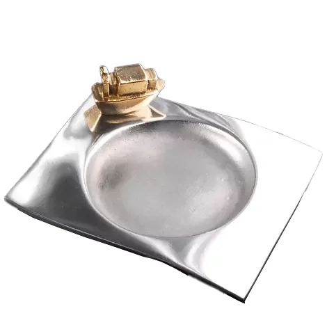 Plate in wave design, smooth, with tanker ship. Decorative platter for desk, bookcase or guest table.