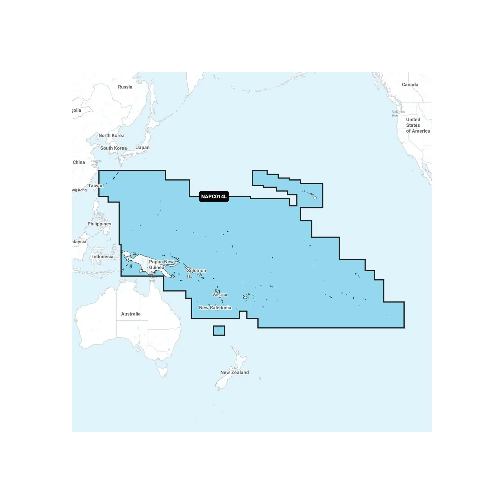 The Navionics+ NAPC014L - Pacific Islands is a comprehensive marine mapping solution designed for boaters navigating the Pacific Ocean. This chart provides detailed coverage of numerous islands, including the Hawaiian Islands, Ryukyu Islands, Papua New Guinea, Solomon Islands, New Caledonia, Fiji, Vanuatu, American Samoa, French Polynesia, Pitcairn Islands, Marquesas Islands, Kiribati, Palau, Marshall Islands, and the Mariana Islands, including Guam.