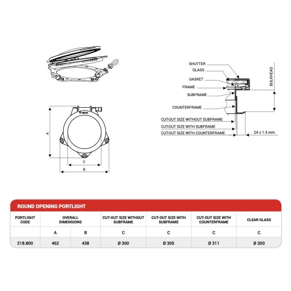 The Nemo 218.800 300 mm opening porthole made of stainless steel is an excellent choice if you want a sturdy, well-visible window in your ship, boat, or yacht. Due to the robust and durable materials, it is a solid and reliable product that is perfectly suited for maritime applications. The built-in window is made of double glass with a diameter of 300 mm, giving it a sleek and modern look. The materials used prevent corrosion in the water, making it the perfect way to look outside. Additionally, the design is slip-in-frame, making installation and removal simple. Combined with the two movable windows, the Nemo 218.800 300 mm opening porthole is the best option for a reliable window in a maritime vehicle.